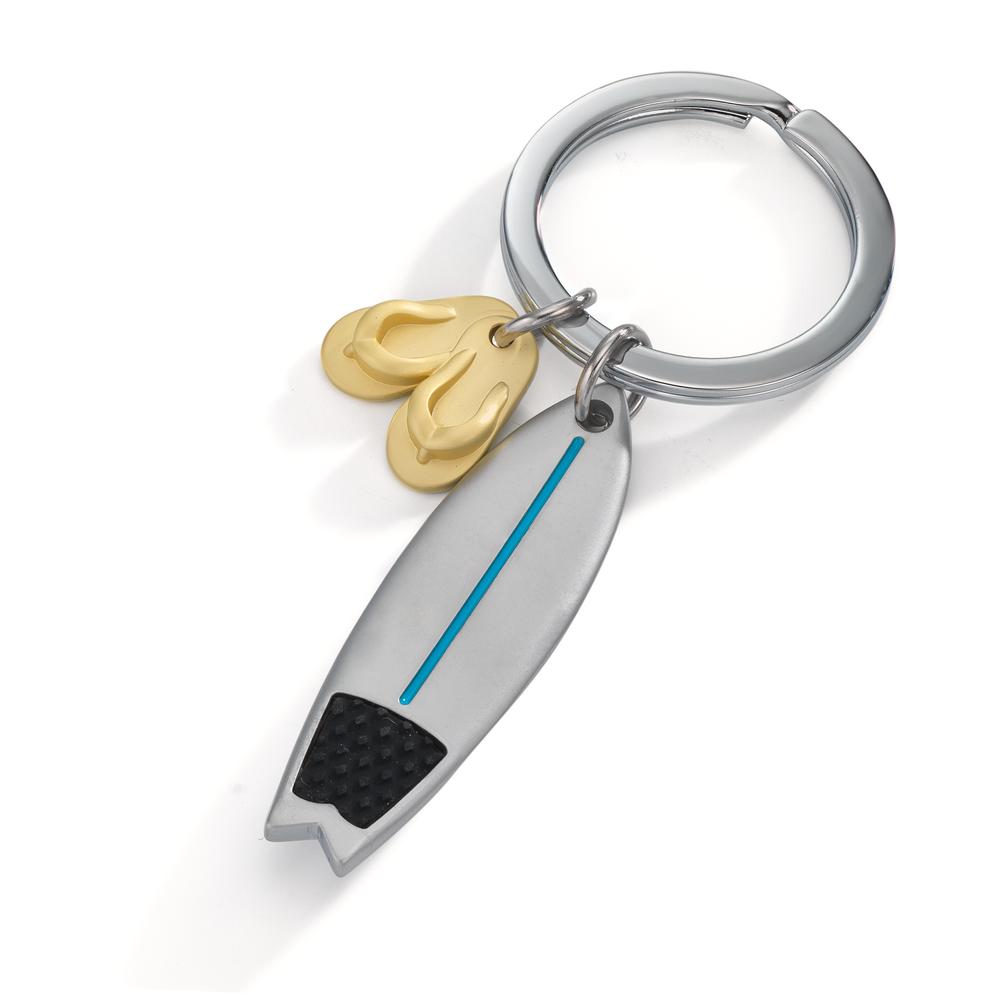 Schlüsselanhänger Metall Surfboard mit Flipflops Ø35 mm