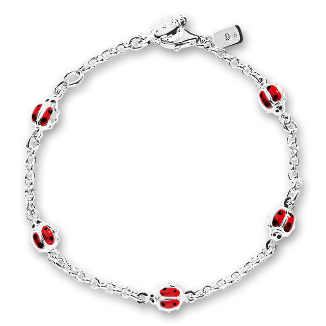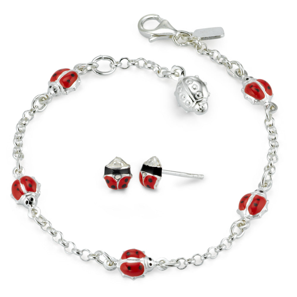 Set Silber Armband mit Ohrstecker Marienkäfer