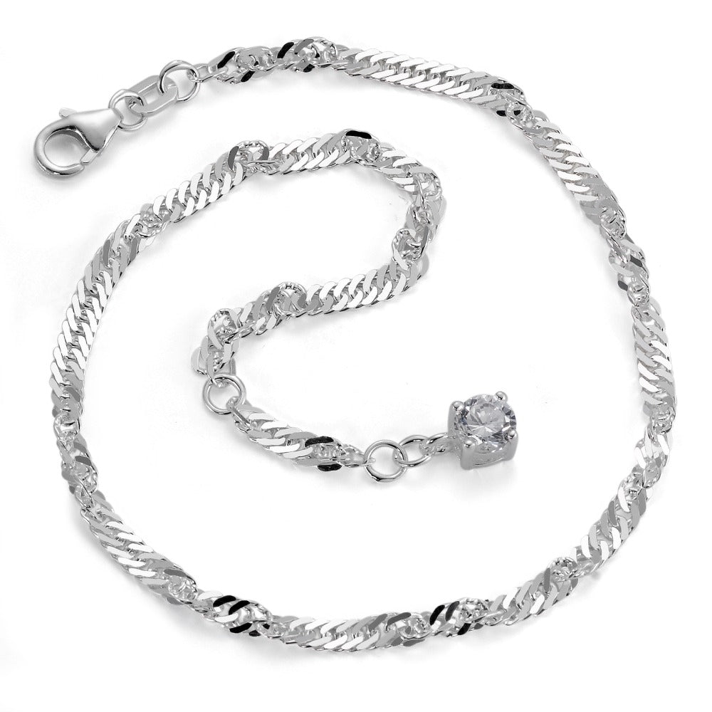 Singapur-Fusskettchen Silber Zirkonia 23 - 25 cm verstellbar