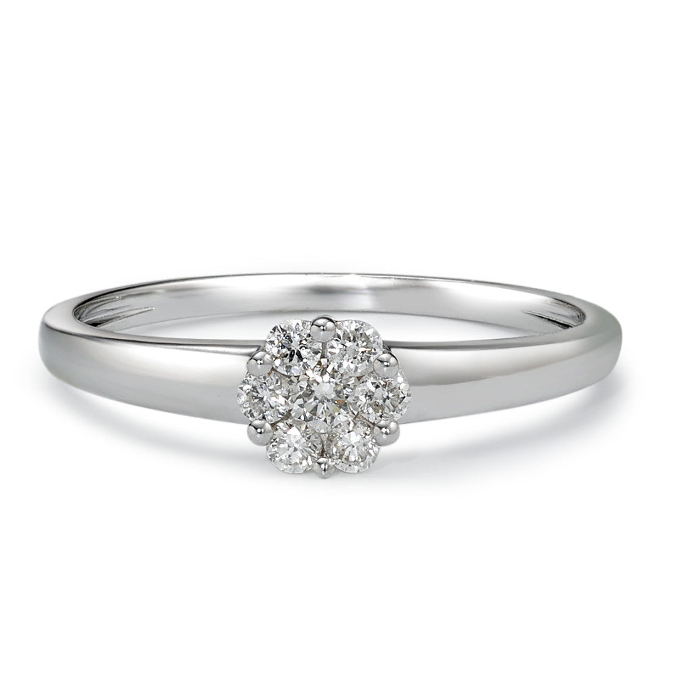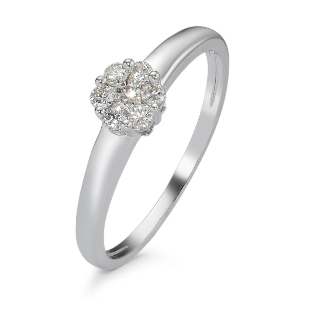 Solitär Ring 750/18 K Weissgold Diamant 0.20 ct, 7 Steine, w-si