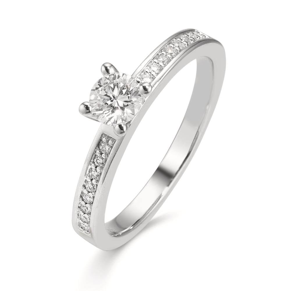 Solitär Ring 750/18 K Weissgold Diamant weiss, 0.40 ct, 17 Steine, Brillantschliff, w-si