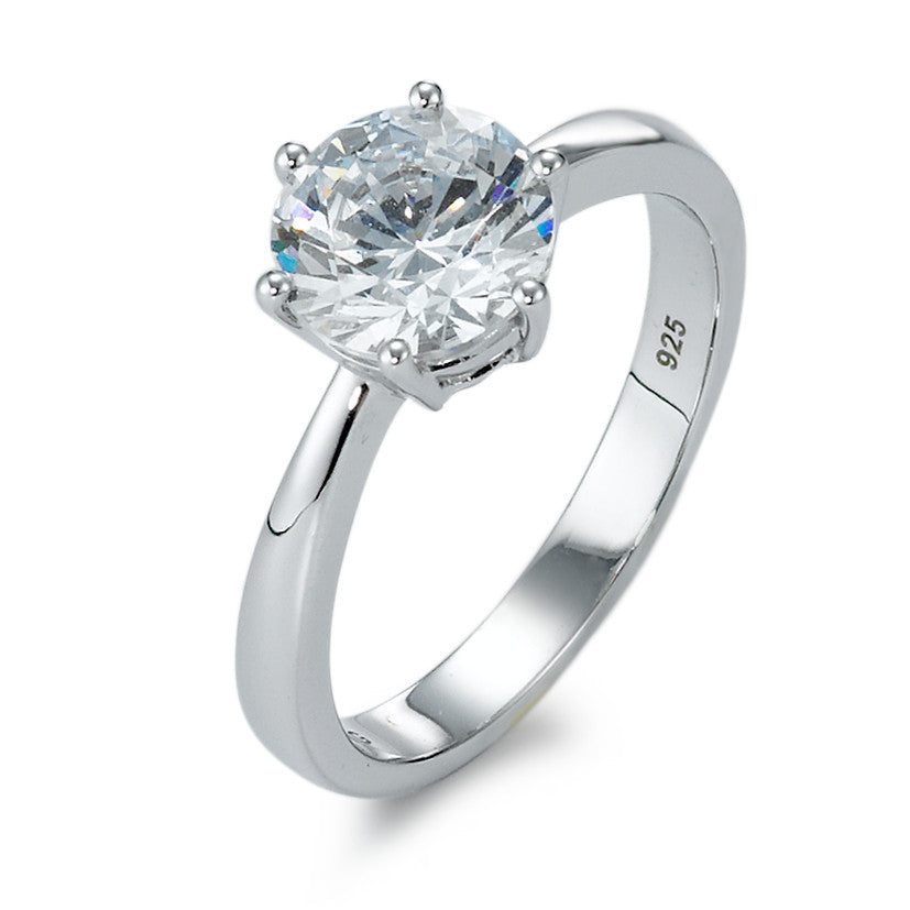 Solitär Ring Silber Zirkonia weiss, rund, 8 mm rhodiniert