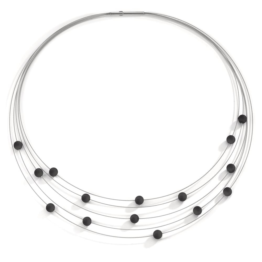 Spiralcollier Orbit aus Edelstahl mit Carbon Pearls, 42cm
