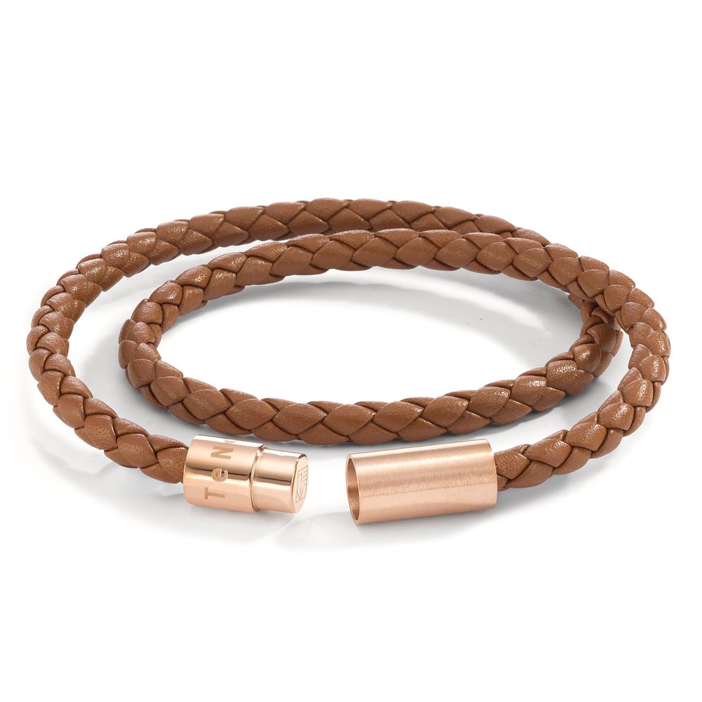 Wickelarmband Heritage Roségold aus Edelstahl, Flechtleder HAVANA BROWN