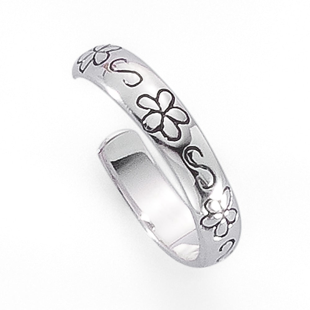 Eleganter Damen Zehenring aus hochwertigem Silber mit floralem Motiv. Verstellbar für optimalen Komfort, ideal für den Sommer und besondere Anlässe. Ein zarter, stilvoller Akzent, der jeden Fussschmuck aufwertet und feminine Leichtigkeit versprüht.